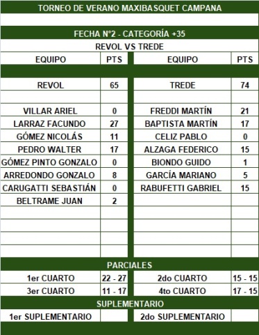 Trede mantuvo su invicto y jugó con mucha serenidad, haciendo la diferencia en los comienzos de cada tiempo. En el comienzo de la velada, el tridente compuesto por Freddi, Álzaga y Rabuffetti sacó diferencia. Con la igualdad en 15 del segundo cuarto, se fueron al descanso con los de del conurbano al frente 42-37. Para destacar en el Revoltijo el trabajo de Gonzalo Arredondo (8) en el primer tramo del partido, y del tándem Larraz-Pedro en toda la etapa.