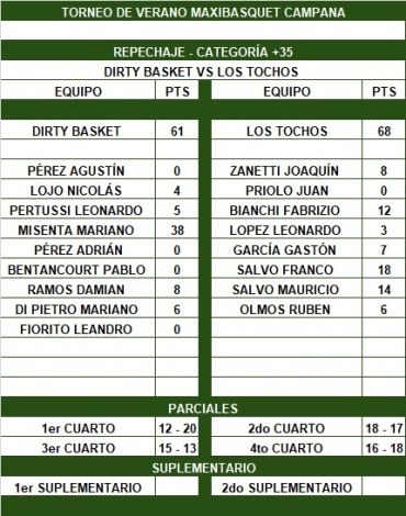 Al reanudar el partido Dirty logró ponerse a 2 (47-45) a 2 minutos para el cierre del tercer acto, pero un buen pasaje de Bianchi y Joaquín Zanetti (8) sostuvieron a los siderúrgicos, que con una bomba de Franco Salvo, en el arranque del capítulo decisivo, volvieron a adelantarse por 8. Misenta se hizo cargo de prácticamente toda la ofensiva de Dirty, para poner a los suyos a 4 puntos. En los minutos finales los siderúrgicos erraron muchos libres, y no pudieron liquidar el partido. Hasta que en los minutos finales dos triples de los hermanos Salvo inclinaron la balanza para el Verde, que así clasificó a la semi versus Los del Sgro.