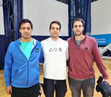 Emiliano Bolgeri (izquierda), Damián Pérez (centro) y Juan Martín Reggi (derecha) estuvieron en Avellaneda apoyando al Tiburón